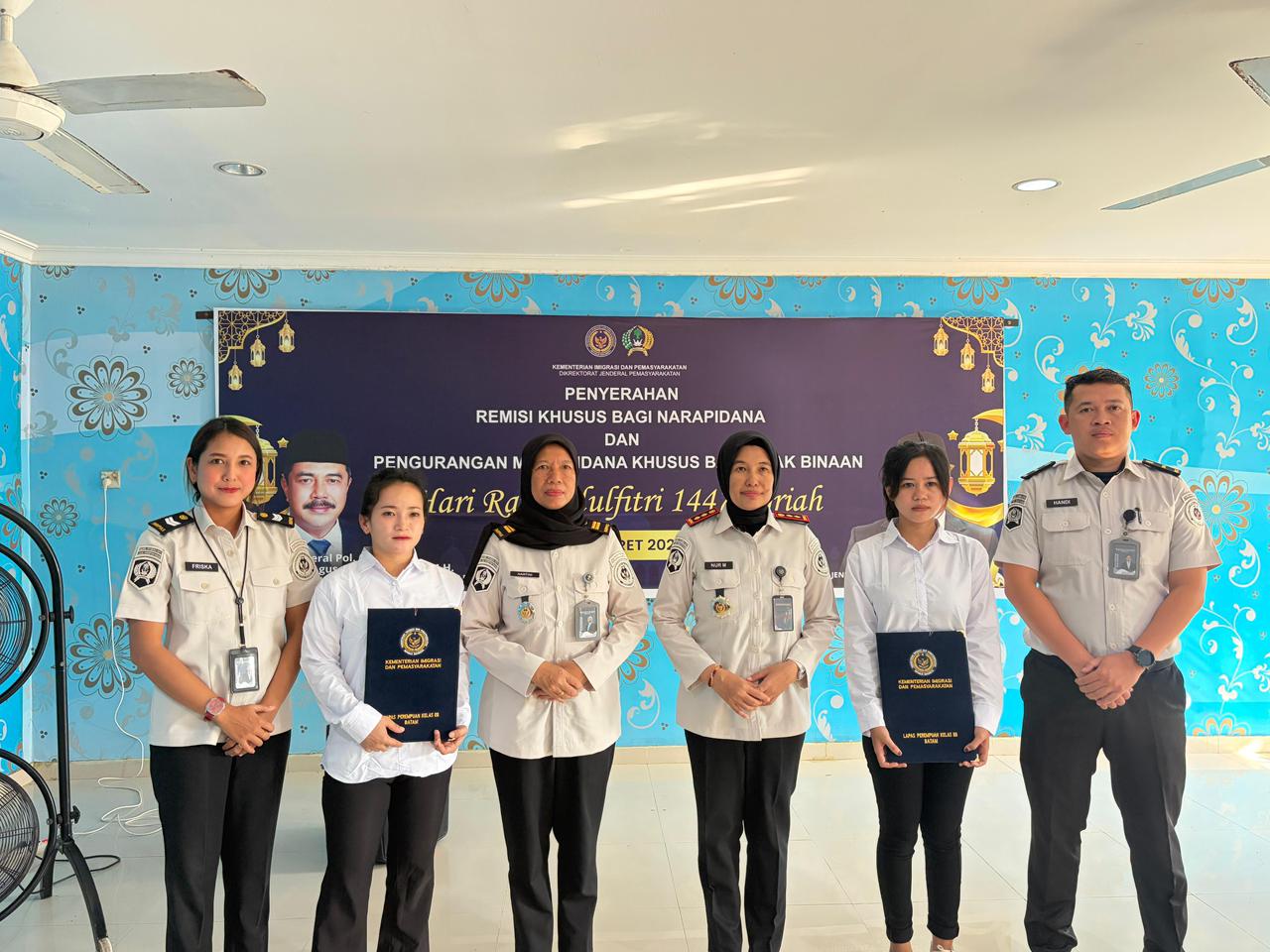 Bataminfo.co.id, Batam- Pembagian Remisi Khusus Hari Raya Idul Fitri 1447 Hijriah diberikan kepada 40 orang Warga Binaan Pemasyarakatan (WBP) di Lembaga Pemasyarakatan Perempuan (LPP) Kelas IIB Batam pada hari ini, 21 Maret 2026. Kegiatan ini dilaksanakan di Kelas C sebagai bagian dari pemenuhan hak warga binaan dalam momentum hari besar keagamaan.