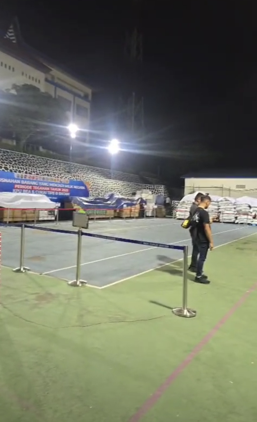 Di sisi halaman lainnya terlihat ratusan karung berisi ballpress di tumpuk siap untuk di musnahkan.