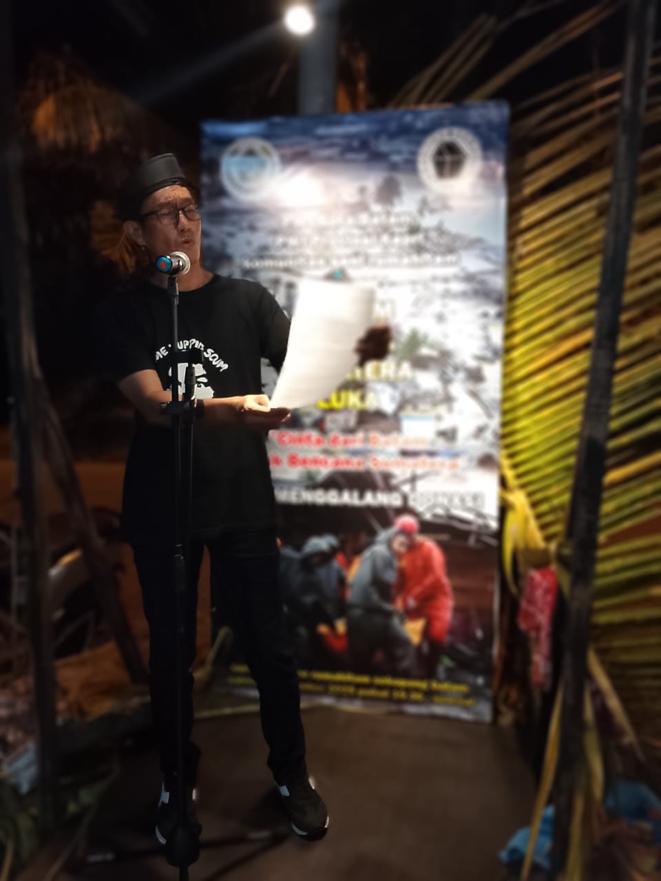 Sanusi, Wakil Ketua Permasa Batam. Datang sebagai tamu, berbagi pilu bencana di Tanah Rencong, sama seperti Khafibdan Saibansyah, Sarjana teknik itu pulang kemudian sebagai pembaca puisi dadakan.
