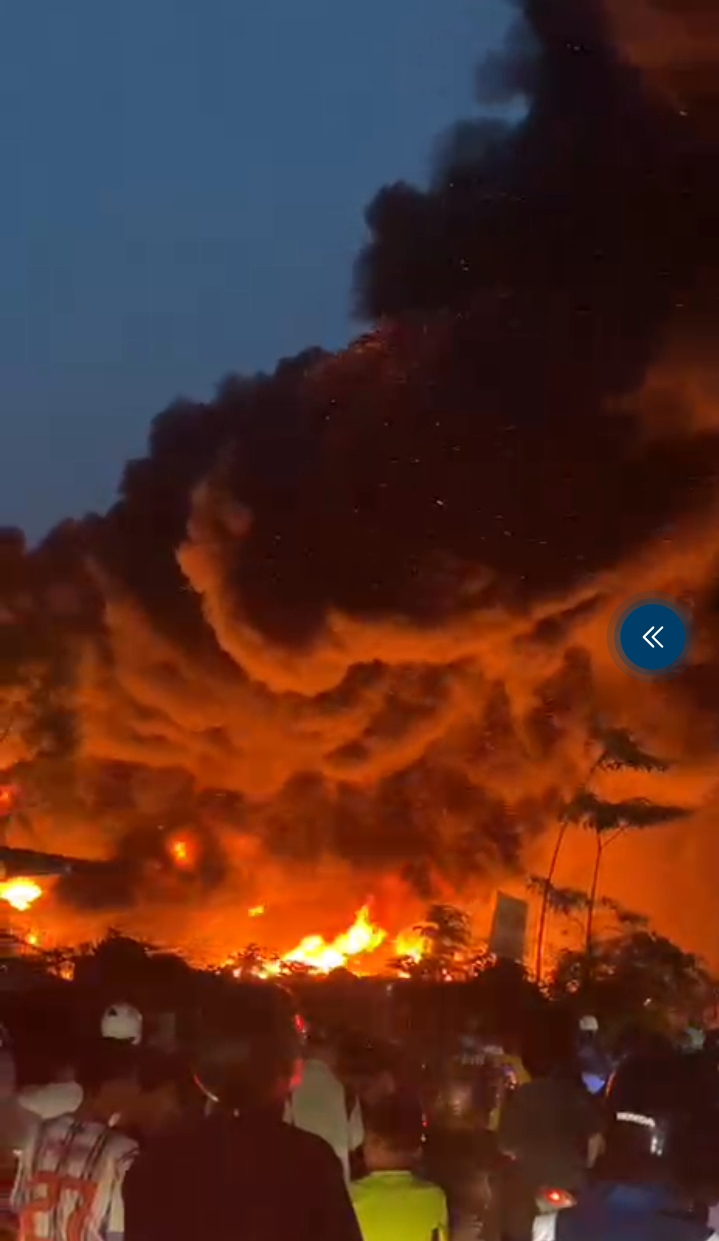 Berdasarkan rekaman video yang beredar luas di media sosial, kobaran api terlihat membumbung tinggi dari area tersebut.