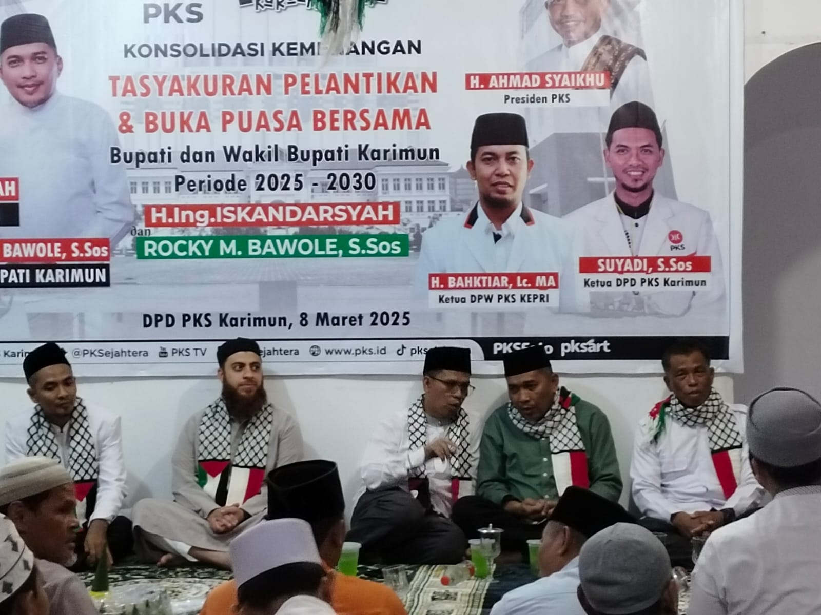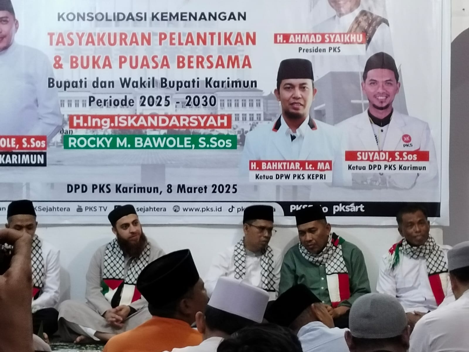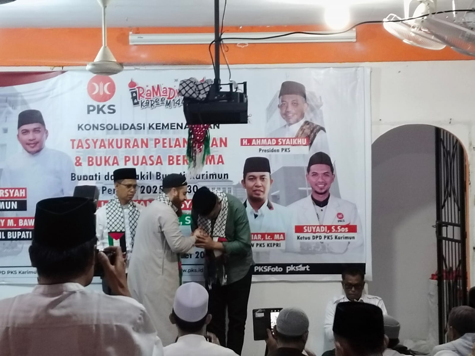 Bataminfo.co.id,Karimun – Bupati dan Wakil Bupati Karimun menghadiri Tasyakuran Pelantikan Serta Buka Puasa Bersama (Bukber) Sekretariat DPD PKS Kabupaten Karimun, Jl. Telaga Timah, Kelurahan Sungai Lakam Barat, sabtu 09/03/2025.