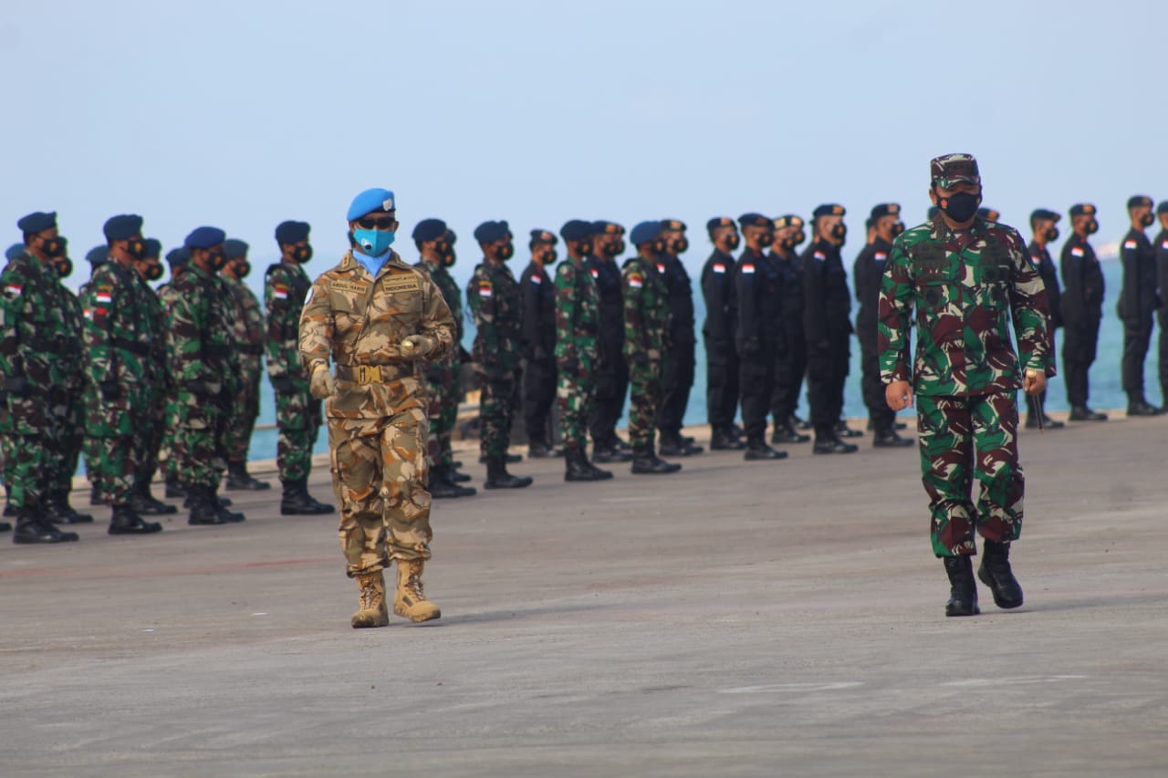 “Laksanakan misi dengan baik, kuasai setiap aturan pelibatan dan prosedur tetap yang berlaku, serta hormati budaya setempat, laksanakan evaluasi berkala dan catat hal-hal penting sebagai bahan peningkatan kemampuan Satgas, jangan pernah lengah, perhatikan faktor keamanan, serta jaga kondisi perorangan dan tetap patuhi protokol kesehatan di masa pandemi Covid-19,” ucapnya.