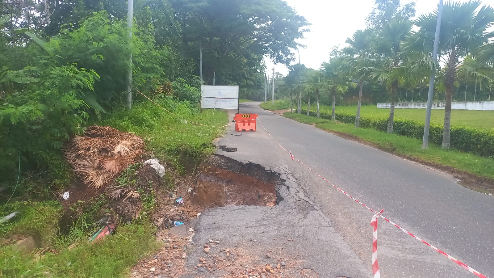 Jalan amblas yang berada dekat kawasan Batam Adventure Park (BAP) itu kini tampak diberi pembatas sementara untuk menghindari kecelakaan di jalur tersebut.