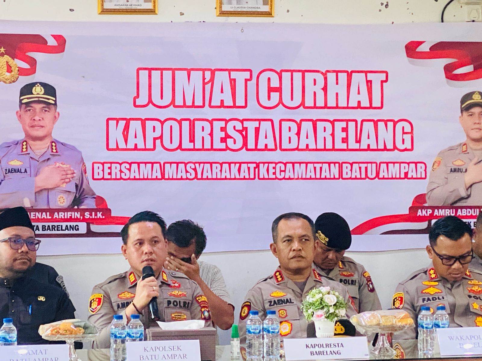 Bataminfo.co.id, Batam- Polsek Batu Ampar gelar giat Jum’at Curhat di Kantor Camat Batu Ampar, Jum’at(02/5/2025). Acara ini dihadiri Kapolresta Barelang, Kombes Pol Zaenal Arifin, Wakapolresta Barelang AKBP Fadli Agus, Kapolsek Batu Ampar AKP Amru Abdullah serta Camat Batu Ampar Ridwan Salatsa.