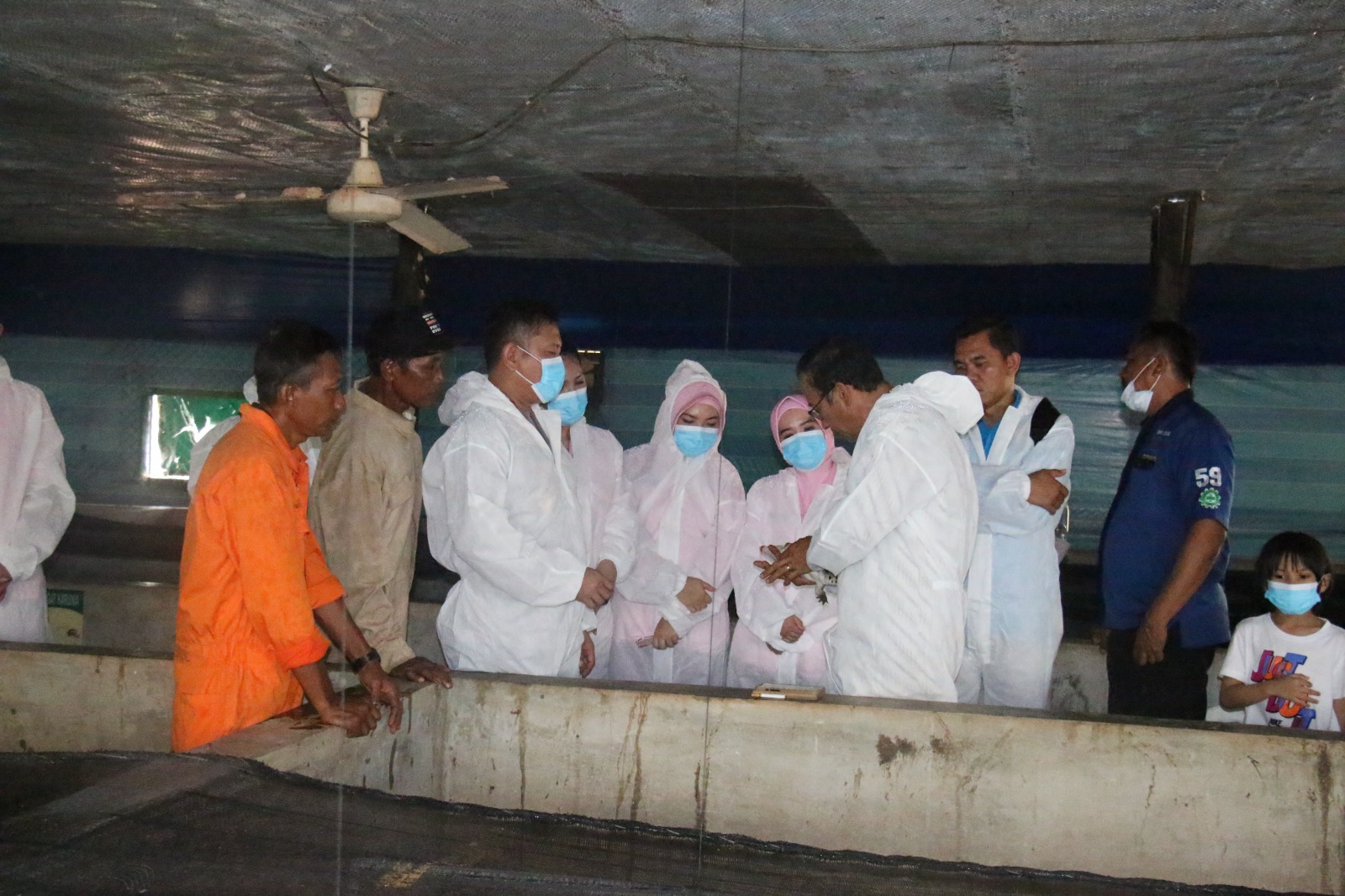 Rombongan tiba di lokasi penangkaran pada pukul 11.45 WIB. Sebelum memasuki area penangkaran, seluruh rombongan diwajibkan mengenakan alat pelindung diri (APD) dan melewati koridor semprot disinfektan. Setelah itu, rombongan diarahkan untuk meninjau lokasi tanggul yang jebol akibat hujan deras sebelumnya.