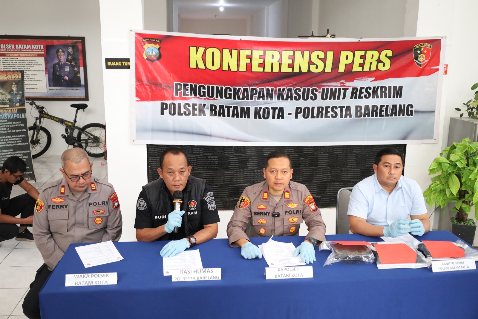 Konferensi pers tersebut dipimpin langsung oleh Kapolsek Batam Kota AKP Benny Syahrizal, didampingi Kasihumas Polresta Barelang AKP Budi Santosa, Wakapolsek Batam Kota AKP Ferry Supriadi, serta Kanit Reskrim Polsek Batam Kota Iptu Bobby Ramadhana Fauzi, di Mako Polsek Batam Kota, Senin, (20/01/2026).
