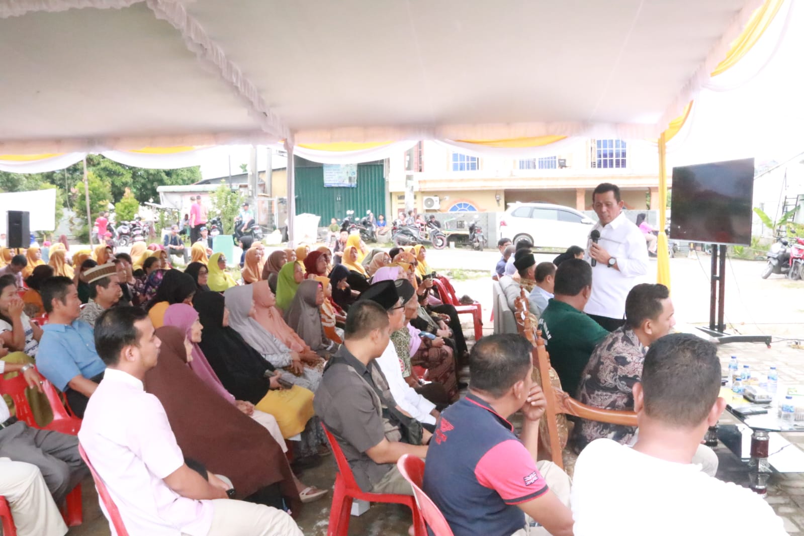 Senada pula dengan yang diucapkan oleh Ketua RW 04, Bpk. Johan Nababan yang menyampaikan rasa bahagianya karena dapat berjumpa kembali untuk menjalin silaturahmi dengan Gubernur Ansar.