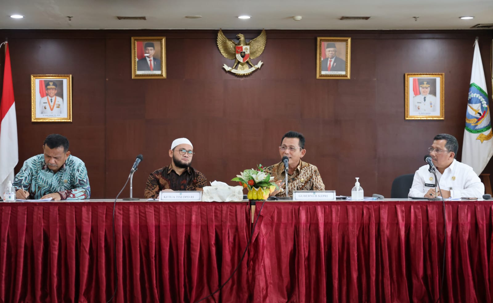 Di hadapan rombongan tim, Gubernur Ansar juga menyampaikan berbagai hal terkait Kepri yang wilayahnya, berbatasan langsung dengan negara luar.