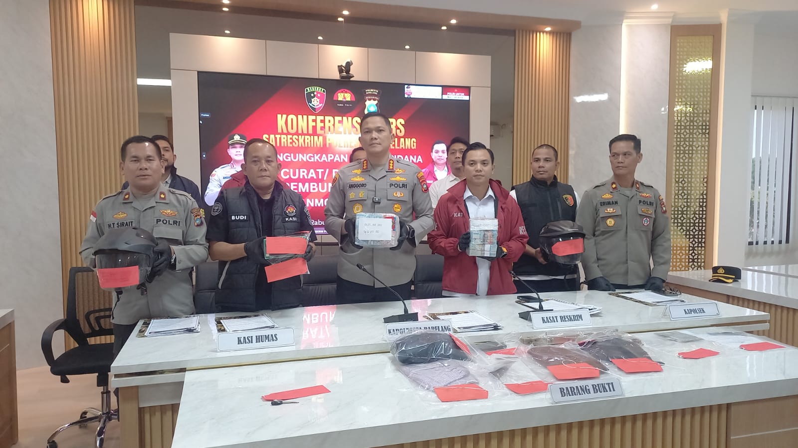 Atas perbuatannya itu, tersangka dijerat dengan pasal 459 dan atau pasal 458 ayat (1) dan atau pasal 466 ayat (3) Undang-undang Nomor 1 Tahun 2023 KUHP.