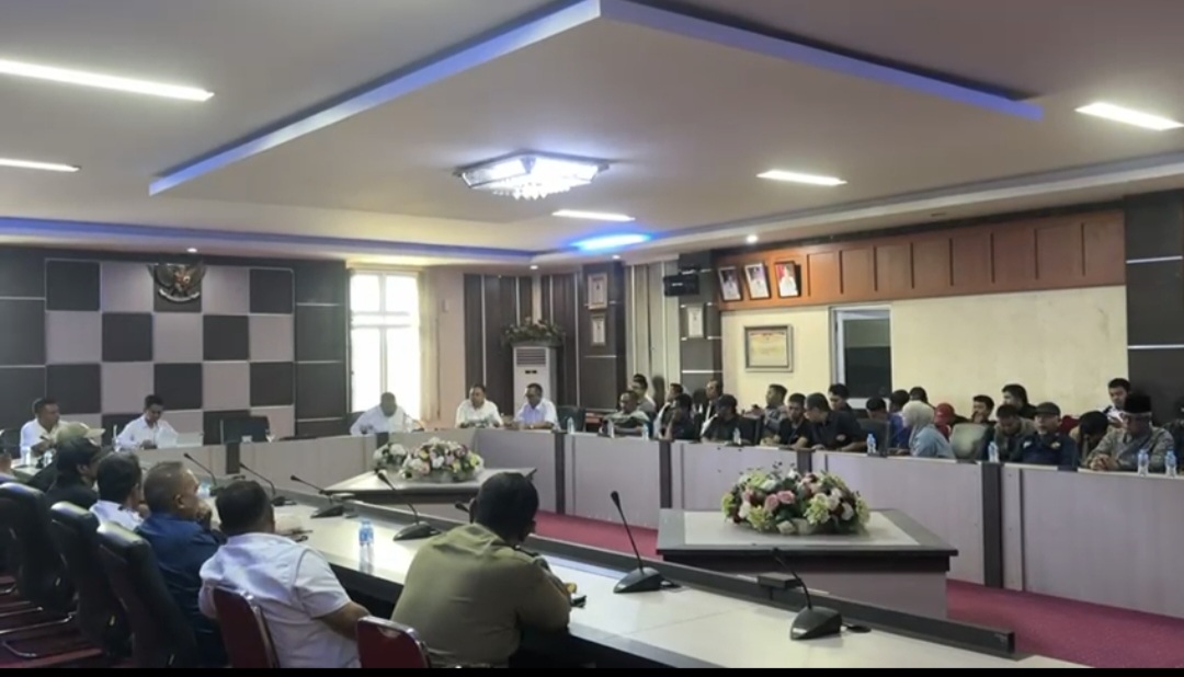 Para pengunjuk rasa yang diwakili oleh tokoh masyarakat serta tokoh pemuda disambut oleh Bupati Karimun Ing Iskandarsyah, Wakil Bupati Rocky Marciano Bawole dan beberapa Kepala OPD, di Ruang Cempaka Putih Kantor Bupati Karimun.