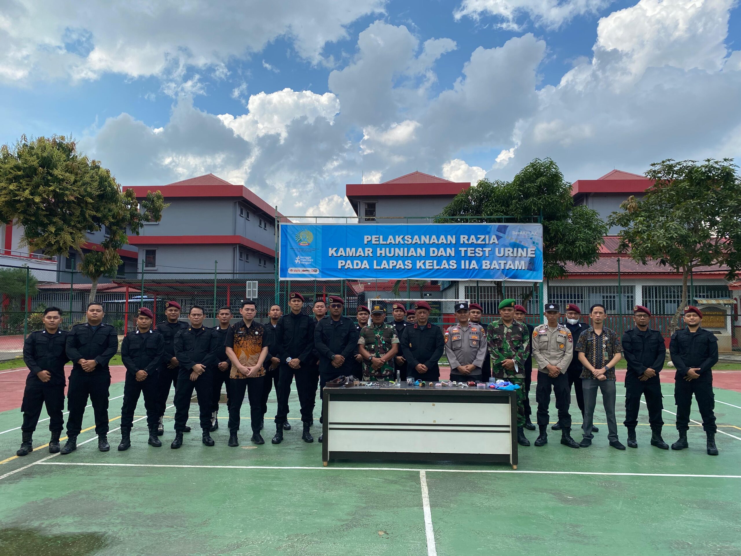 Bataminfo.co.id, Batam– Lembaga Pemasyarakatan (Lapas) Batam menggelar razia gabungan bersama aparat penegak hukum dari Koramil 02 Sekupang, Polsek Sagulung, dan Badan Narkotika Nasional Kota (BNNK) Batam. Razia ini digelar sebagai upaya untuk memastikan tidak ada peredaran narkotika dan barang terlarang lainnya di dalam lapas.