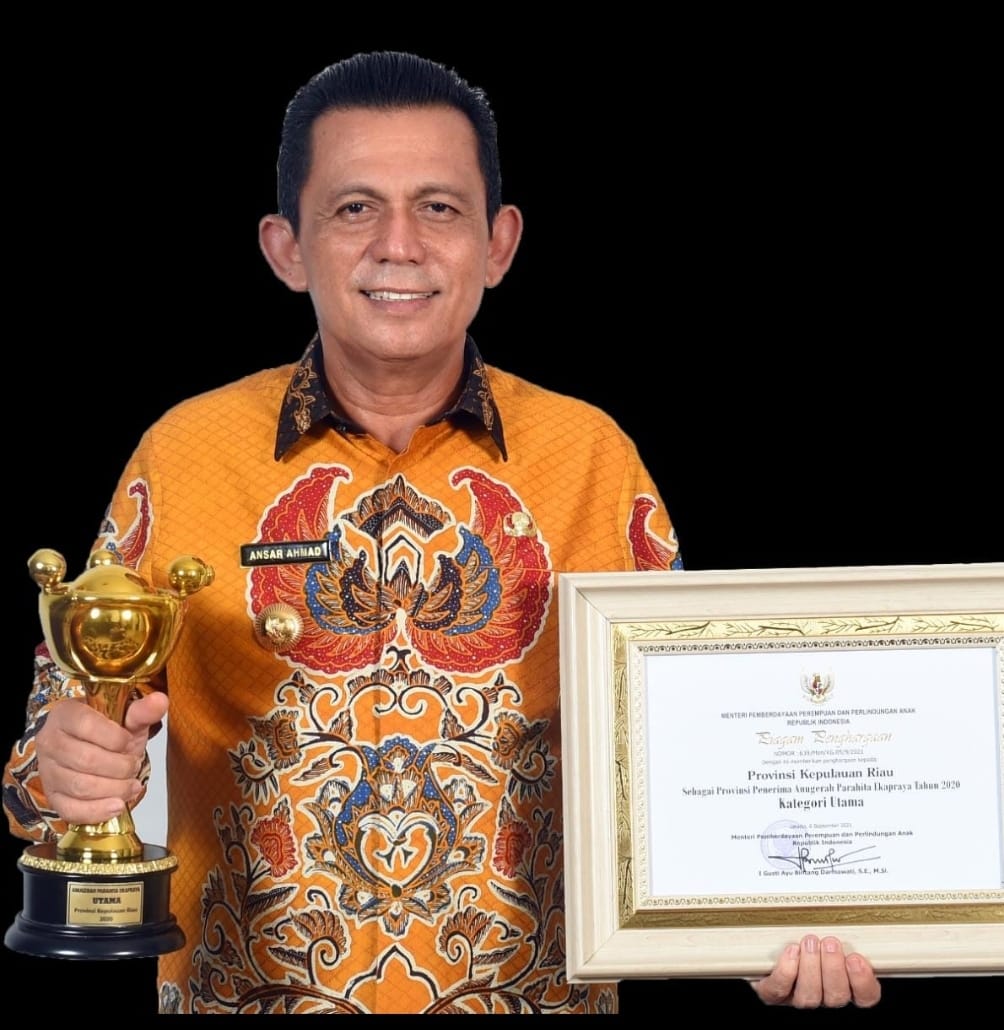 Bataminfo.co.id, Tanjungpinang – Pemerintah Provinsi Kepulauan Riau untuk yang ke 11 kalinya meraih penghargaan Anugerah Parahita Ekapraya (APE). Tahun 2021 ini Penghargaan APE Kategori Utama diserahkan langsung oleh Kementerian Pemberdayaan Perempuan dan Perlindungan Anak Republik Indonesia ke Gubernur Kepulauan Riau Ansar Ahmad, secara virtual, Rabu (13/10).