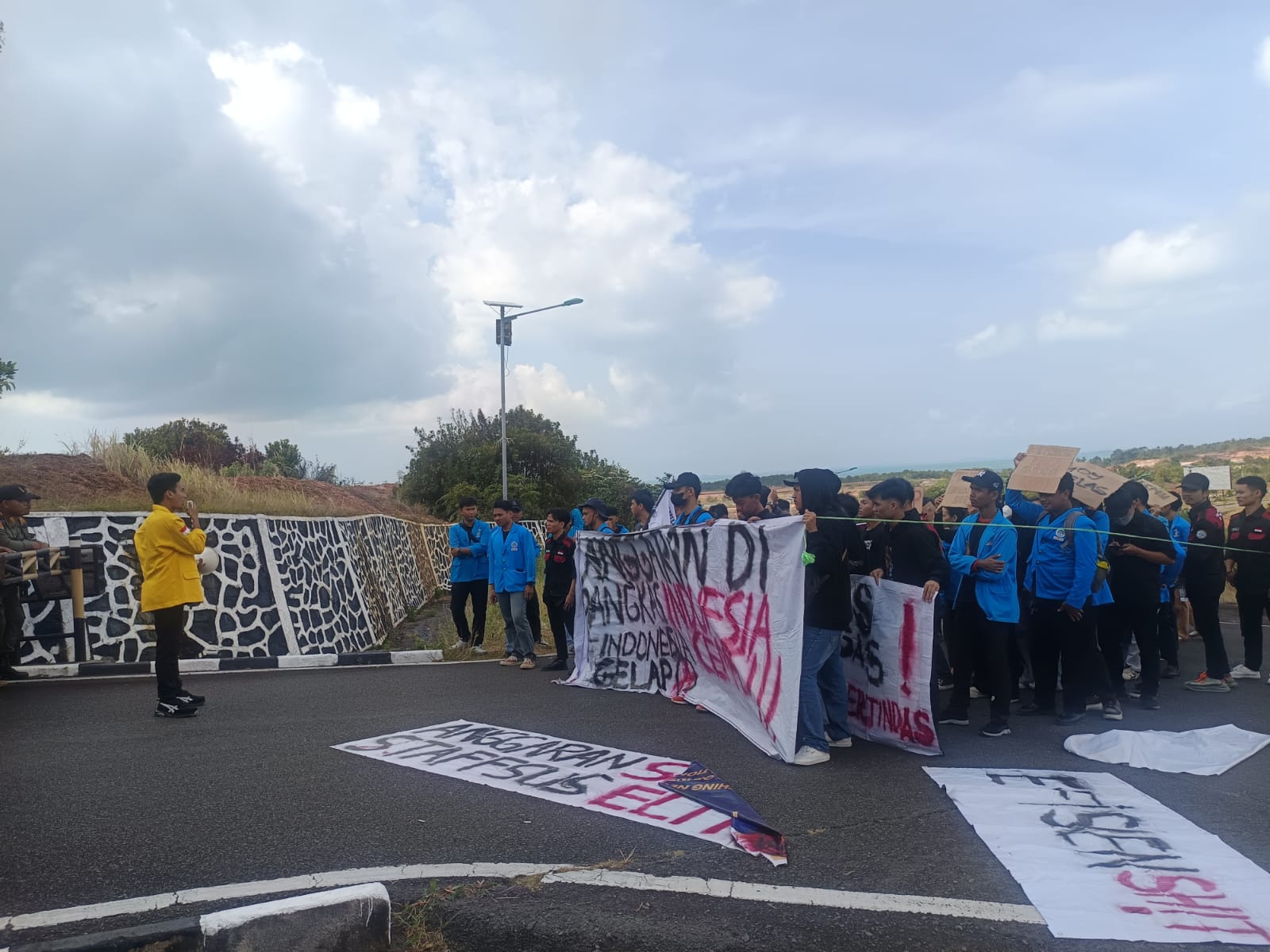 Dalam orasinya mahasiswa beralmamater kuning menyampaikan bahwa, saat ini Indonesia sudah terasa gelap, dikarenakan pendidikan bukan menjadi prioritas negara melainkan kegiatan makan bergizi gratis.