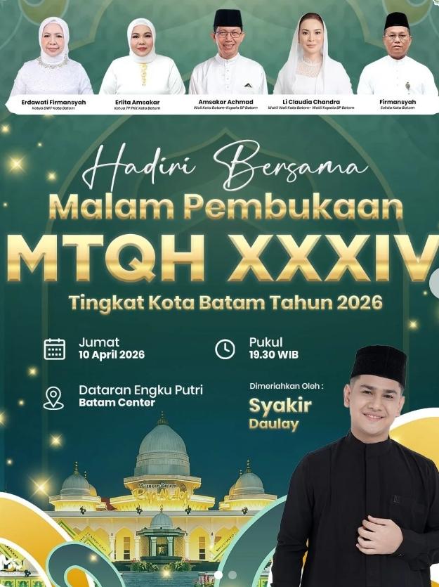 Keterangan foto : flyer acara malam pembukaan MTQH XXXIV Tingkat Kota Batam 2026, arsip(Wi)