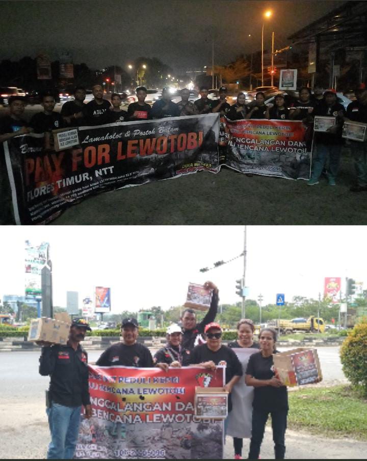 Tak hanya Satgas NTT Peduli Kepri, di saat yang sama, ada pula perwakilan Pemuda Flores Timur (Flotim) Kota Batam yang tengah melakukan aksi yang sama di Simpang Kepri Mall.
