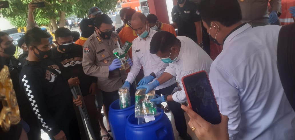 Polda Kepri Larutkan 46,7 Kilogram ke Dalam Air Panas