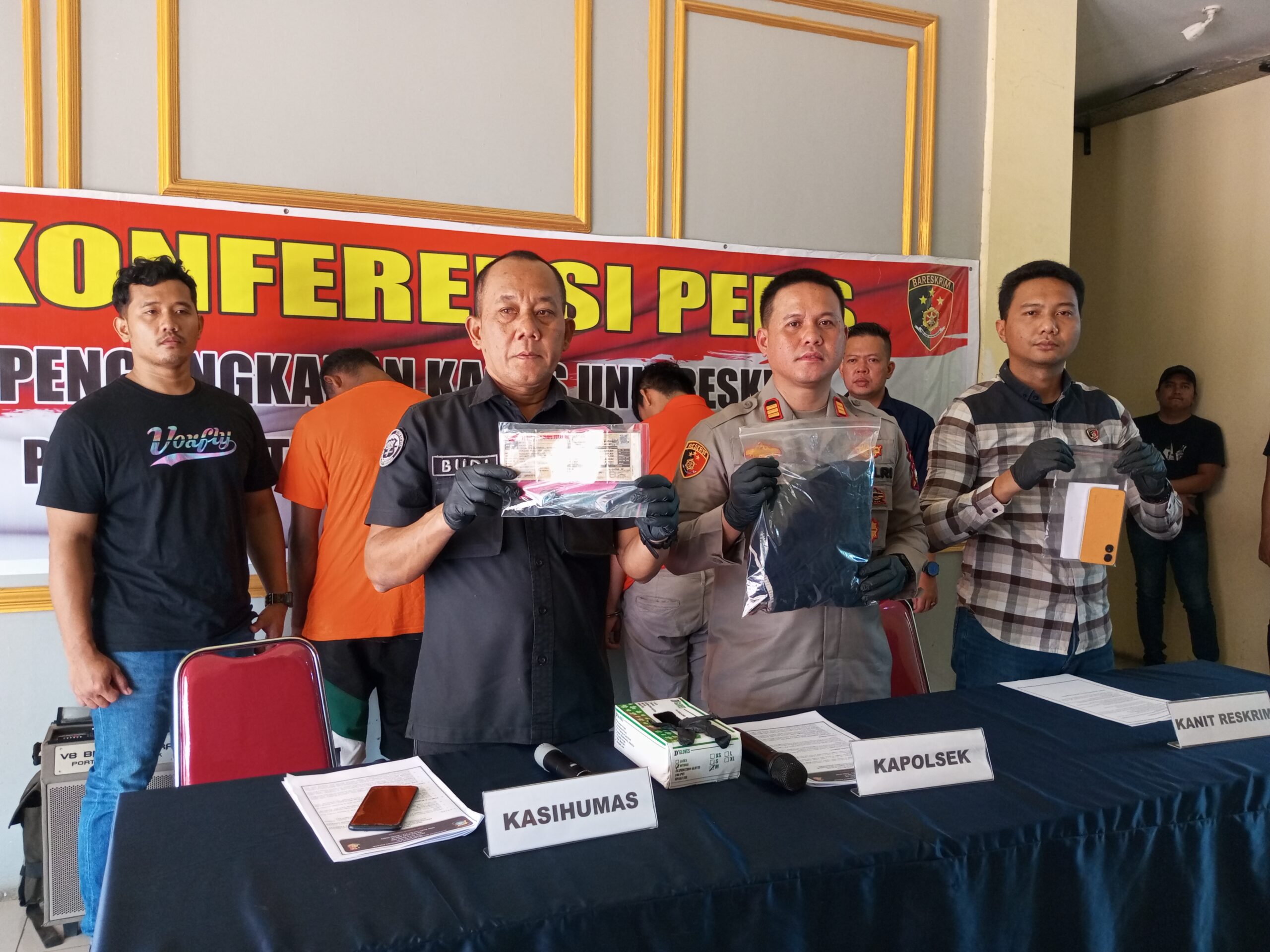 Konferensi pers tersebut dipimpin langsung oleh Kapolsek Batu Ampar AKP Amru Abdullah didampingi oleh Kasihumas Polresta Barelang Iptu Budi Santosa serta Kanit Reskrim Polsek Batu Ampar Iptu M. Brata Ul Usna,