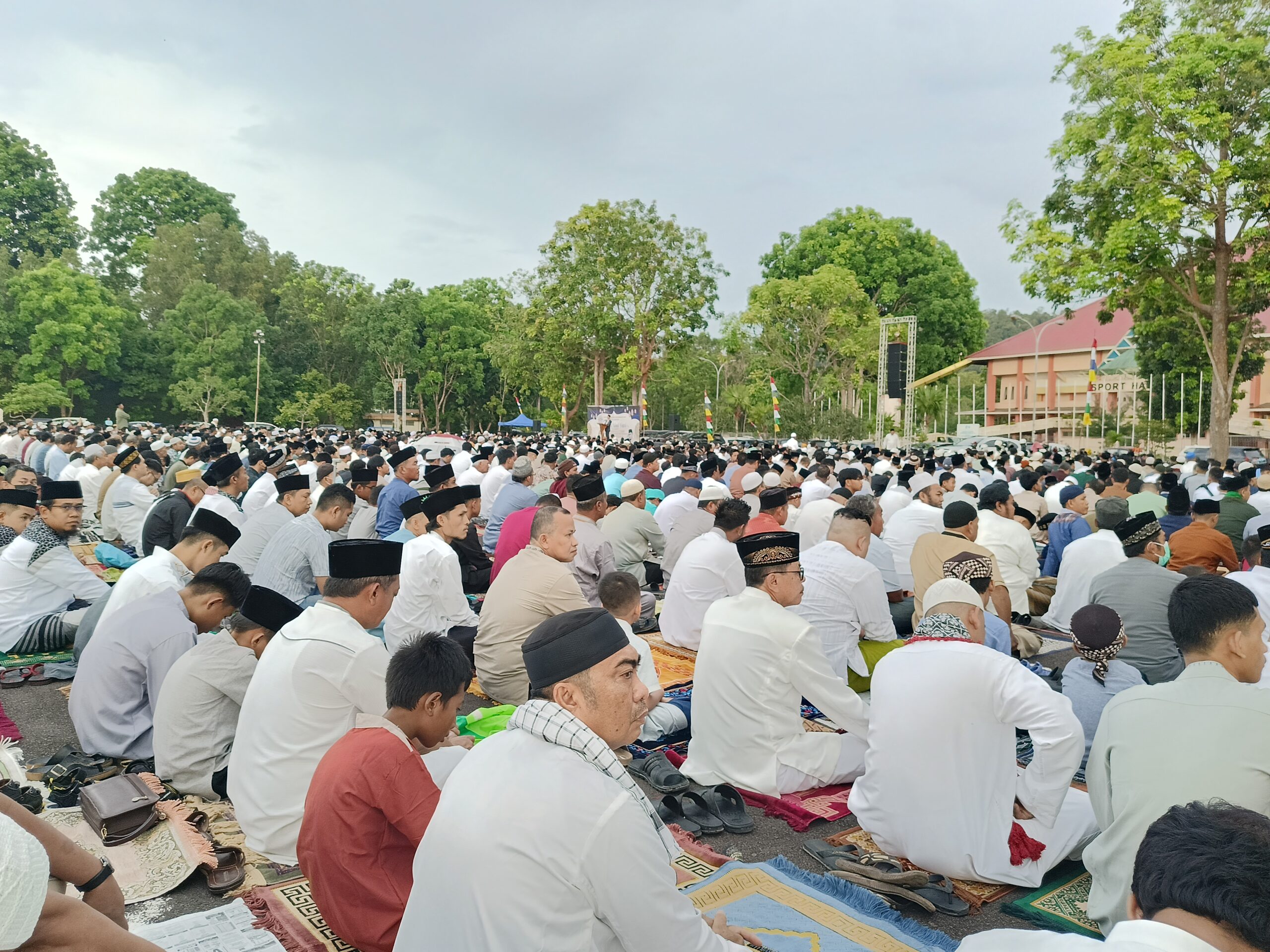 Salat Id dipusatkan di Stadion Temenggung Abdul Jamal,dan di mulai tepat pukul 7.15 .