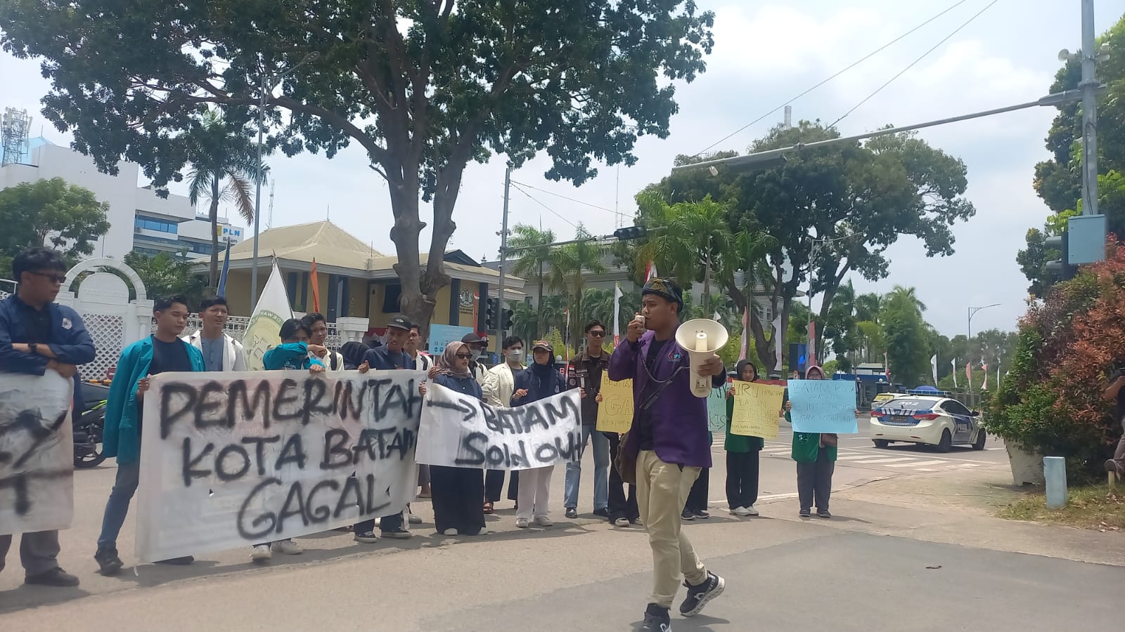 Sebelum memasuki Kantor DPRD Batam, para Mahasiswa ini sempat berorasi di depan gerbang masuk, menyampaikan aspirasinya.