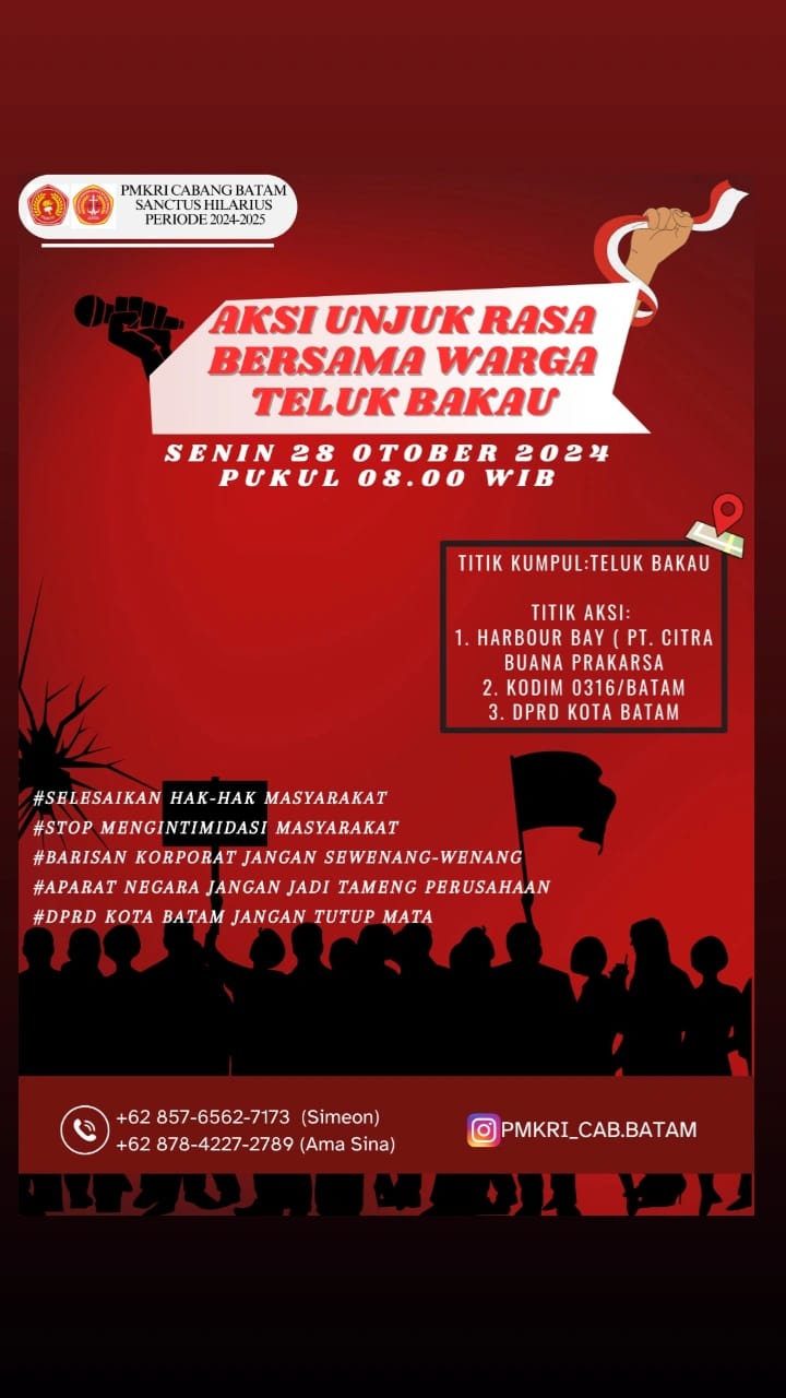 “PMKRI Cabang Batam akan memperjuangkan persoalaan ini sampai hak-hak warga mendapatkan keadilan yang semestinya. Dan jika di aksi jilid pertama ini tidak mendapatkan hasil yang masyarakat inginkan, maka kami akan melakukan aksi berjilid-jilid hingga persoalan masyarakat terselesaikan. Hari ini kami di tiga titik yang mana bertepatan dengan hari sumpah pemuda 28 Oktober 2024,” tegasnya.