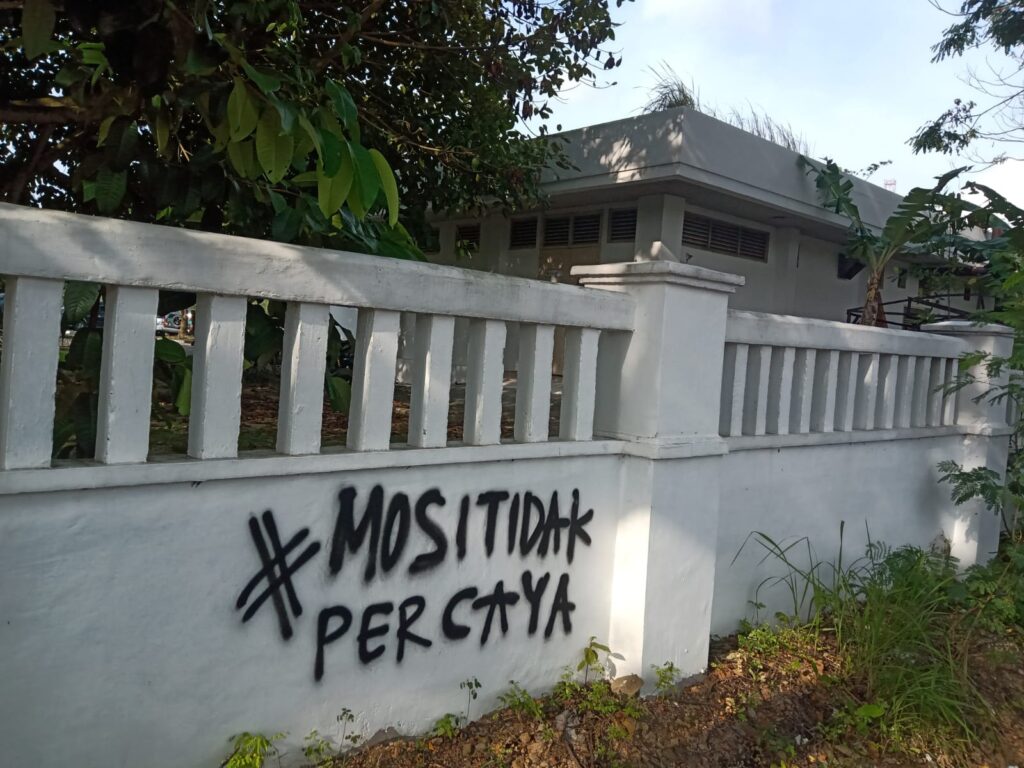 Bataminfo.co.id, Batam – Baru-baru ininsebuah coretan hitam bertuliskan “#Mositidakpercaya” terpampang pada pintu belakang dinding pagar…