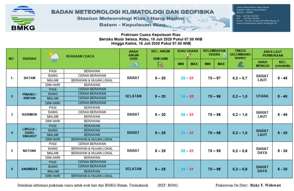 Bataminfo.co.id, Batam – Wilayah Provinsi Kepulauan Riau diprediksi akan mengalami hujan di siang hingga malam…