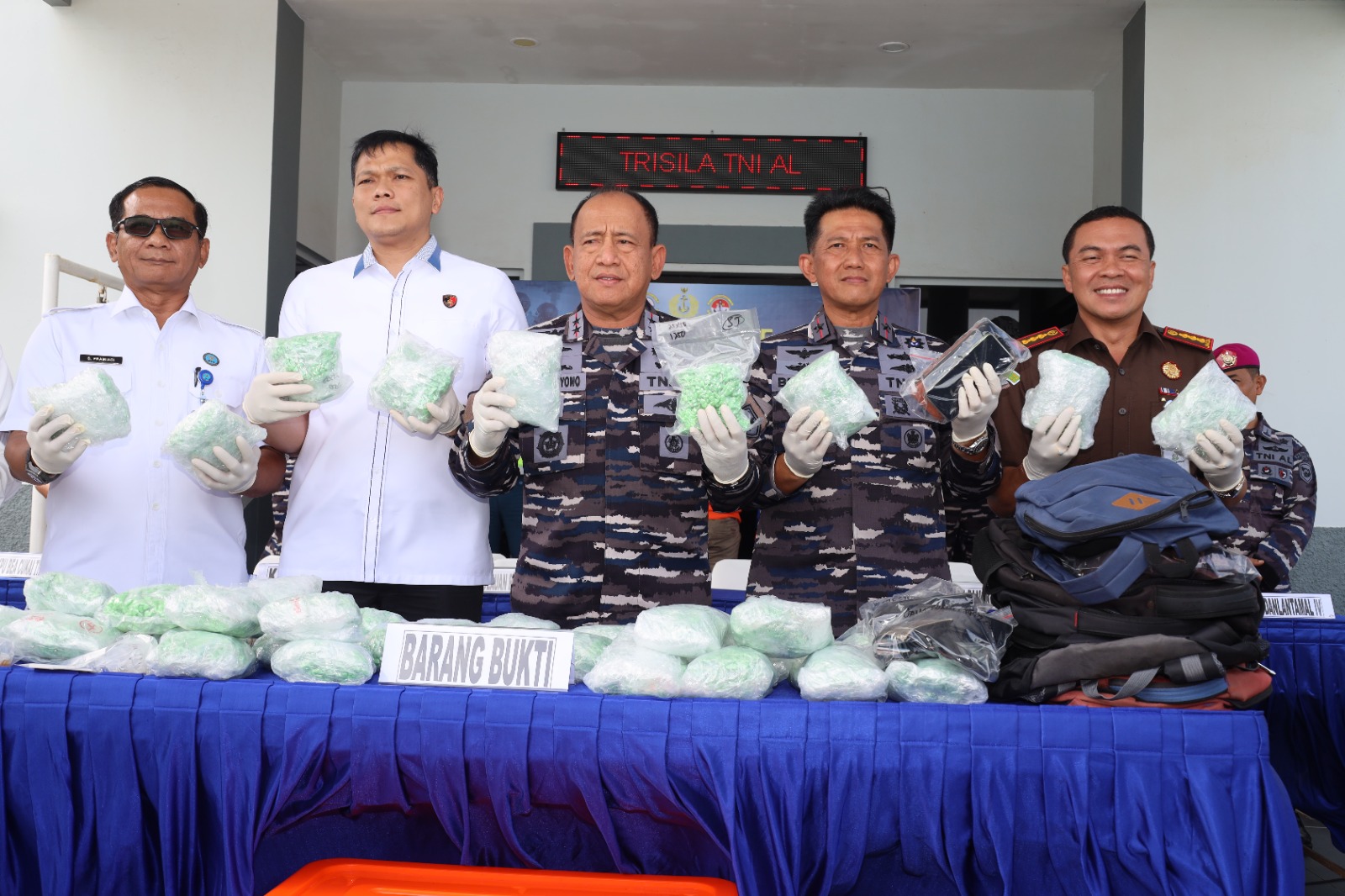 “Keberhasilan tim F1QR Lanal TBK menggagalkan penyelundupan Narkotika ini menjadi bukti nyata bahwa TNI AL telah melaksanakan perintah tegas dan prioritas Kepala Staf Angkatan Laut (Kasal) Laksamana TNI, Muhammad Ali untuk memerangi penyelundupan dan peredaran narkotika yang menindaklanjuti perintah langsung Presiden Republik Indonesia Prabowo Subiyanto, untuk membasmi peredaran narkotika untuk menyelamatkan masyarakat Indonesia dari dampak negatif Narkotika,”ujarnya.