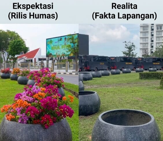 Bataminfo.co.id, Batam – Unggahan foto penataan pot tanaman bougenville di sejumlah ruas jalan protokol oleh Humas BP Batam memicu kontroversi. Netizen di Kota Batam melayangkan protes keras setelah menemukan ketidaksesuaian antara foto yang dirilis dengan kondisi riil di lapangan.